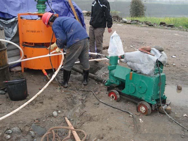 立式攪拌機(jī)和注漿機(jī)施工現(xiàn)場(chǎng)